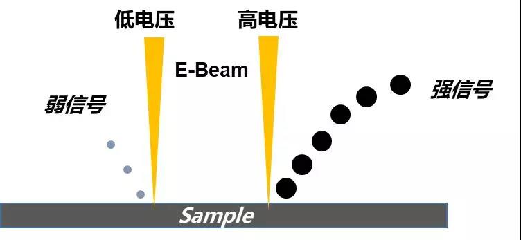 但我们也需要清楚地意识到,低电压的运用是有很大挑战的,首先电子束处于较低的能量,很容易受到磁场、噪音、震动的干扰,电子光学系统的色差也会增大,这方面各厂家会有相应的解决方式,不再过多赘述,其次,低能量电子束所激发的信号,产额相对较少,多为能够反映表面精细结构的弱信号,而这种情况下,探测系统对信号的接受效率显得尤为重要。